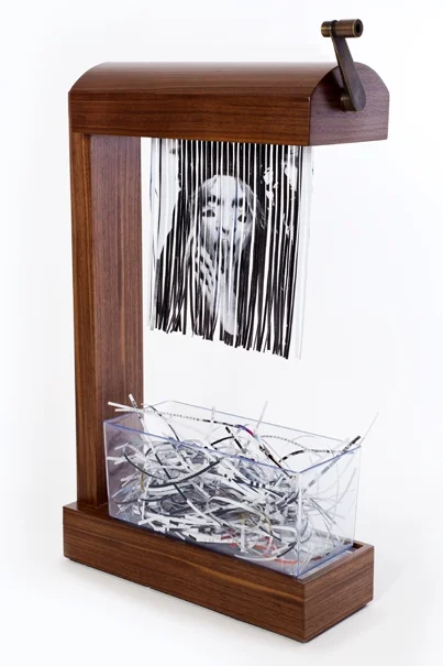 Eliminator is a table lamp which has different light sources in it. It uses paper as a curtain shade to the light on the top and the shredded papers as the nest of a new light at the bottom. Users can personalize the lamp by their choice of paper from magazines, newspapers, etc.
